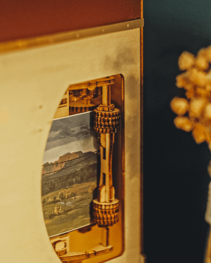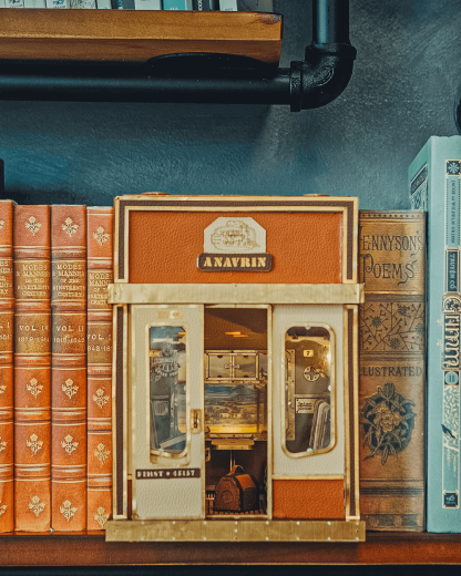 Experience assembling our 'Moving' 1940s Train Cabin DIY book nook kit, which transports you on a nostalgic journey through a rustic railway carriage. Complete with realistic leather suitcases, cozy cabin seats, a heavy sliding door, and a vintage inter-phone, our kit features a moving scene that enhances the realism of the train ride, making you feel like a passenger on this timeless journey.