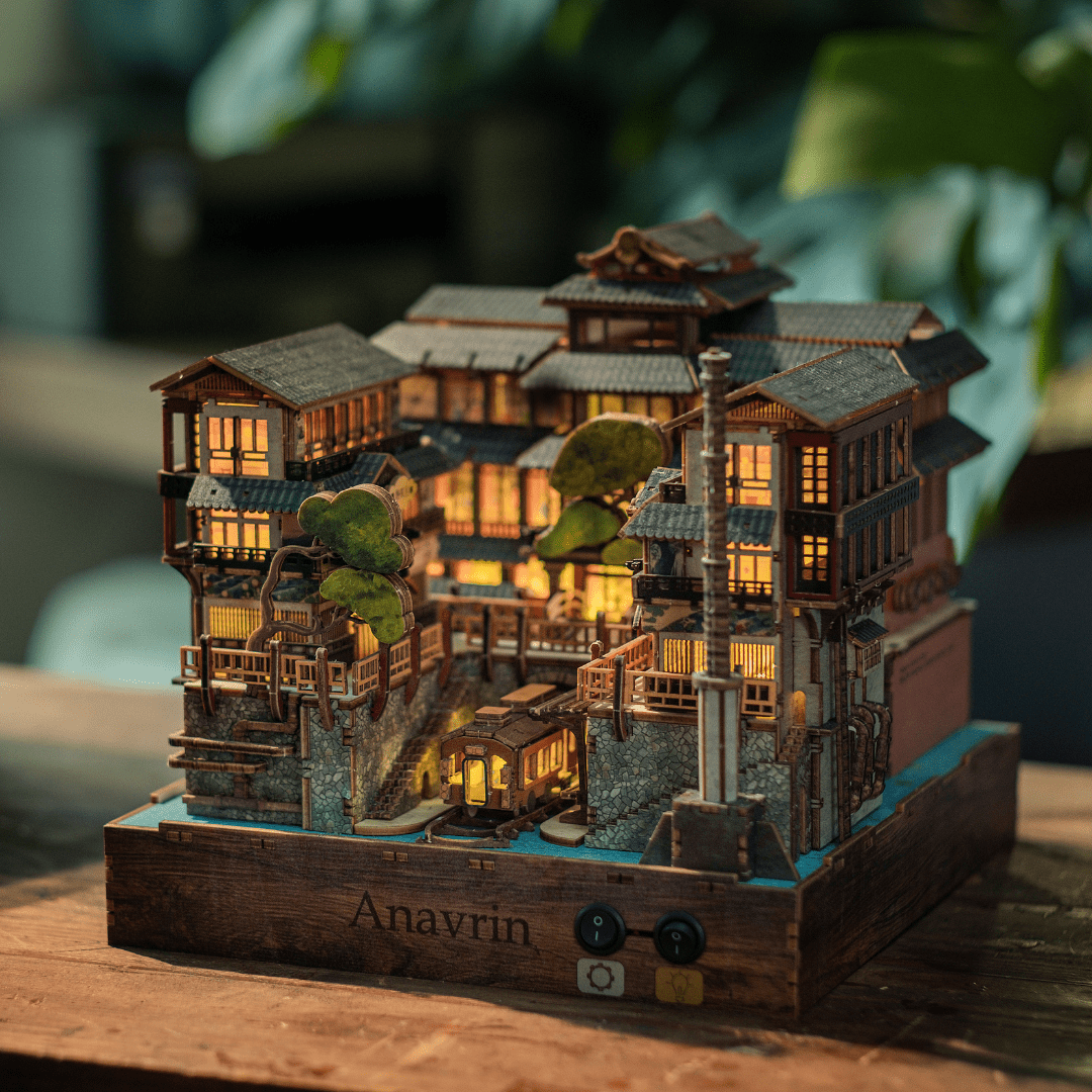 Enjoy the experience of assembling our Ginzan Onsen DIY book nook kit, where Japanese elegance meets traditional charm, featuring architectural marvel Notoya Ryokan, an underground train, traditional sliding doors and tatami floors to the glow of tōrō and andon lanterns, captures the essence of classic Japanese living.