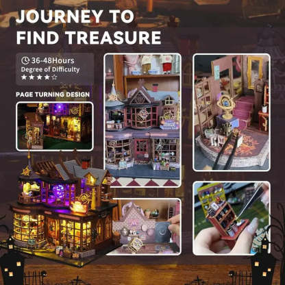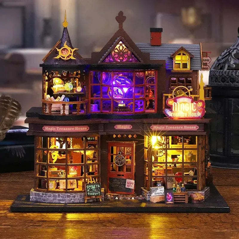 Step into the mystical glow of the Magic Treasure House DIY book nook. With glowing orbs, potion shelves, and enchanted instruments tucked inside a two-story shop, every detail feels alive with wonder. Warm lights and a glowing crystal centerpiece create a magical scene that’s as fun to build as it is to display.